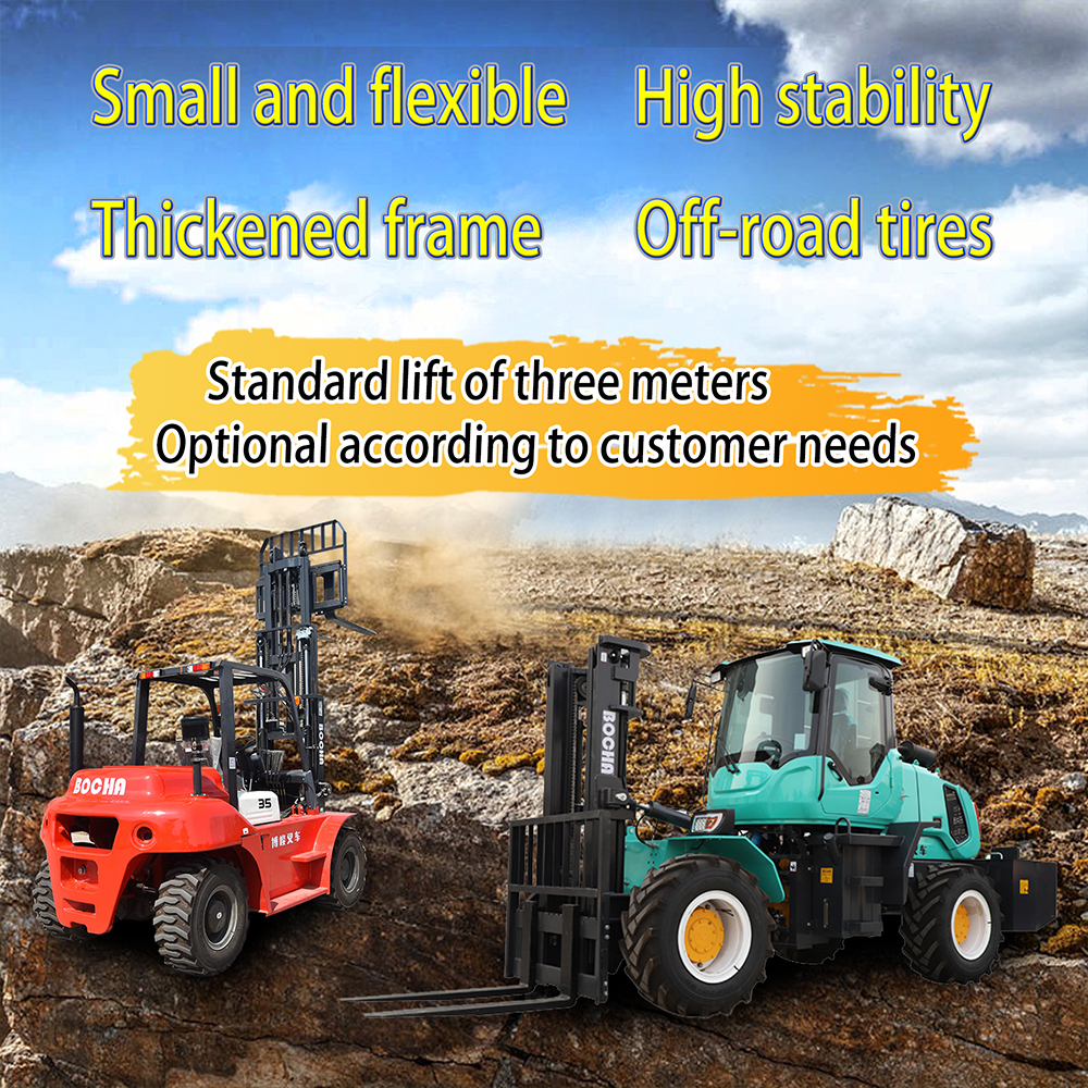 一般市场上的4驱越野叉车,车身很长,大约在3.8-4米 ,转弯半径很大,需要的工作场 地空间很大,如果你的工作场地小而窄或是地下室,还有崎岖不平的坑洼地怎么办?需要考虑的方面太多啦,真的让人很纠结。